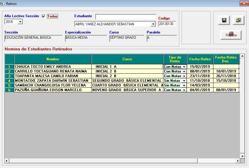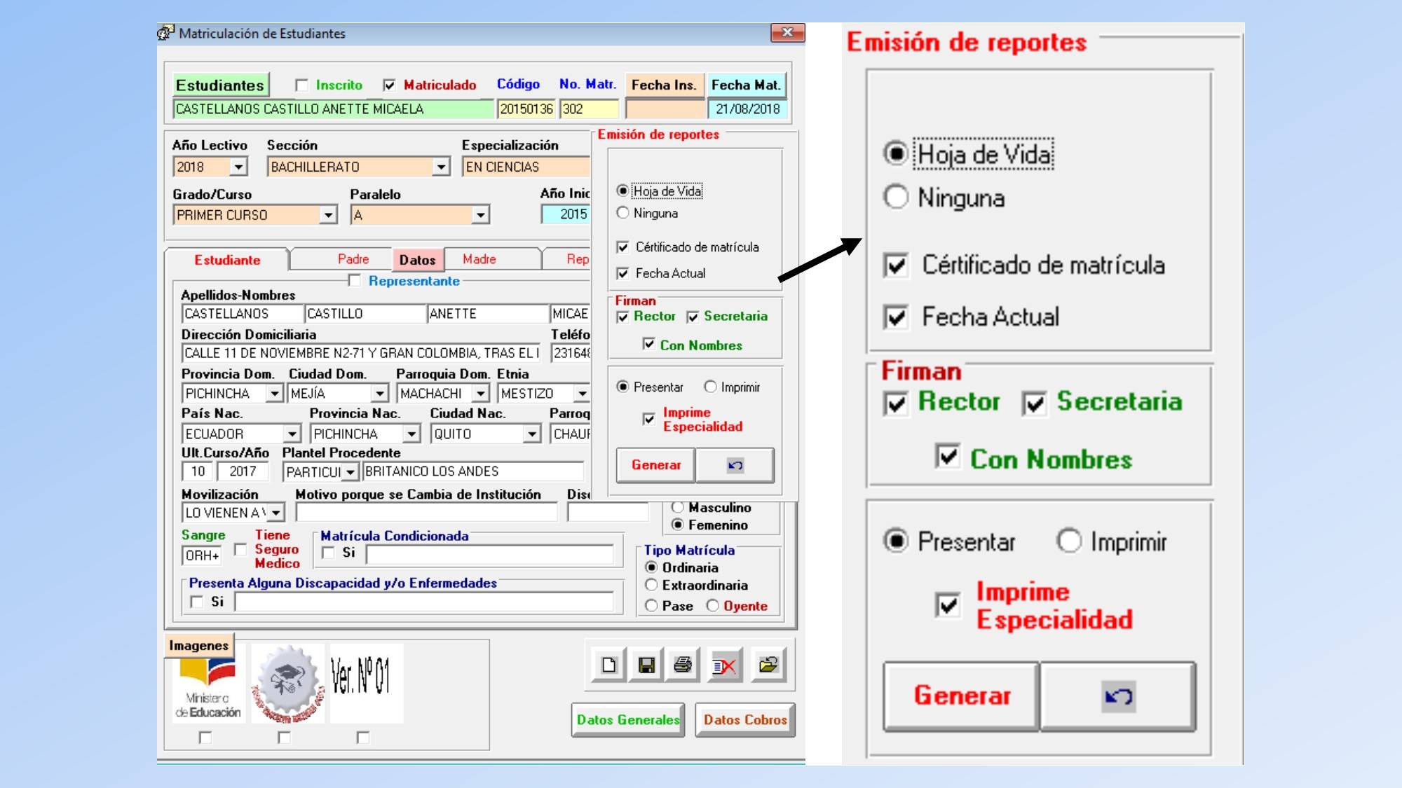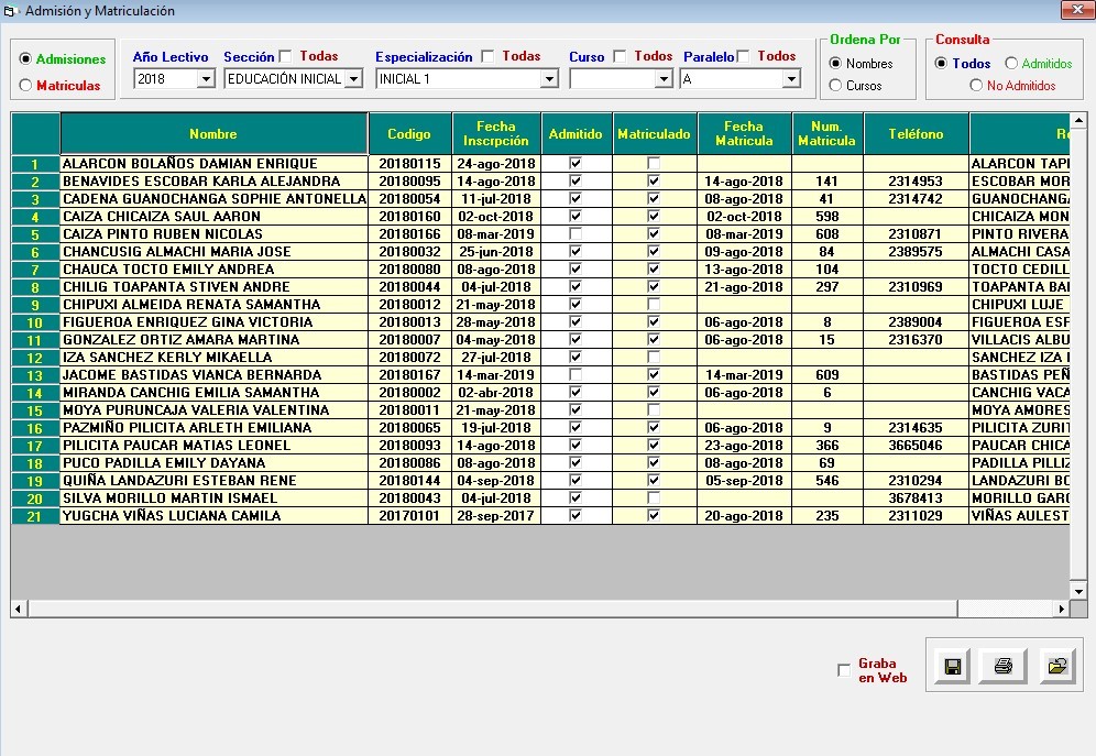 Listado de Matriculados, Listado con Fotos de Estudiantes, Total de Estudiantes Matriculados,