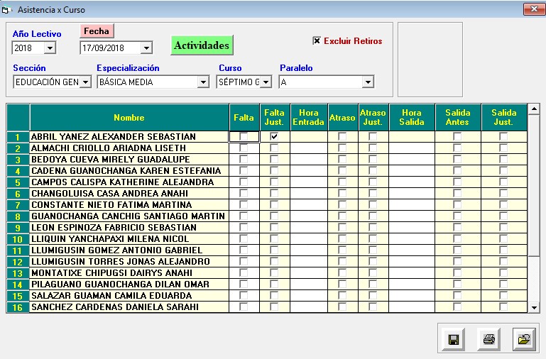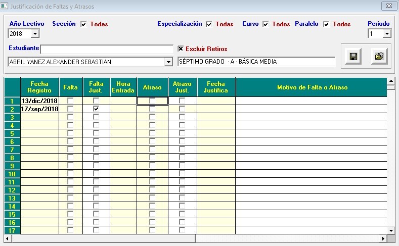 de Faltas y Atrasos, Control de Faltas y Atrasos, Asistencia Global por Parcial o Periodo, Reporte de