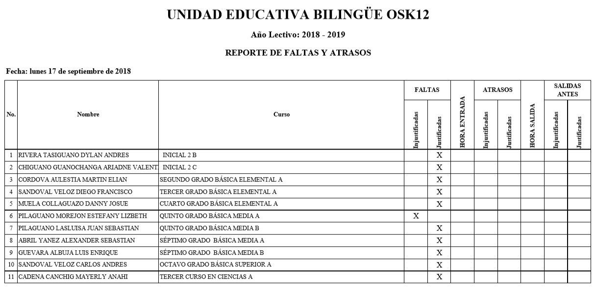 Asistencia por Curso, Justificación de Faltas y Atrasos, Reporte de Faltas y Atrasos, Reporte Global