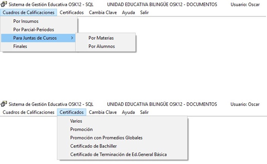 por Periodo, Cuadro de Calificaciones para juntas de Curso, Cuadro de Calificaciones para juntas